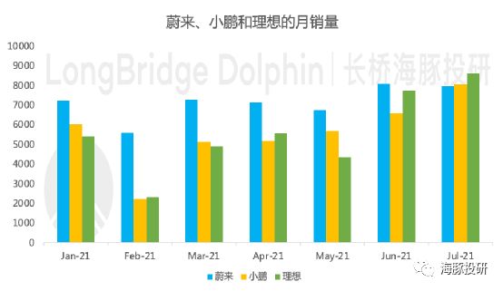 蔚来: 2021年7月交付7931辆, 环比降2% ,在新车型ET7于2022年一季度交付之前,没有新车上市或现有车型的更新;