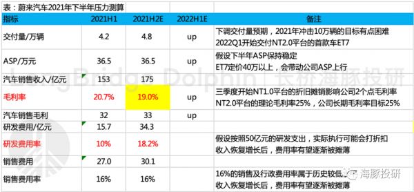 2022年上半年,ET7的交付会带动公司单车收入和毛利率的改善,同时交付量和收入端的上行也有望摊薄费用率。