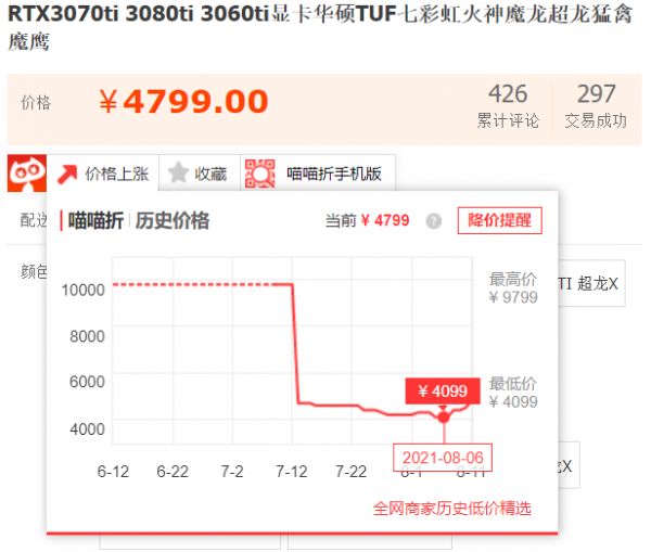 其实,在七月底八月初的时间里,不少厂商都已经在通过一些渠道小规模出货RTX 3060和RTX 3060Ti,其中RTX 3060Ti的价格一度已经跌到了3699元左右,可以说是相当接近首发价了。