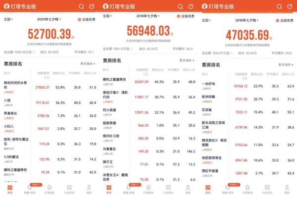 另外, 昨天七夕全国共有场次30.61万场, 这个数字虽然不及2019年七夕的40.24万场、2018年七夕的35.84万场,但相比去年七夕的30.09万场,其实是略高的。