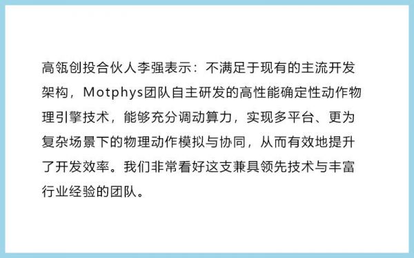 36氪获悉,近日,动作物理引擎公司Motphys已完成数百万美元天使轮融资,该融资由红杉中国种子基金和高瓴创投联合领投,Game Trigger跟投。资金将主要用于产品升级、技术研发及商务拓展等方面。