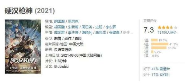 从影片完成度来看,《硬汉枪神》的质量在网络电影中确属于上乘。动作场面、细节、质感皆有,套路之余不乏创新,让人眼前一亮。然而不过短短七天时间,1.3w的豆瓣网友就已经把这部影片的豆瓣评分打落至7.3分。