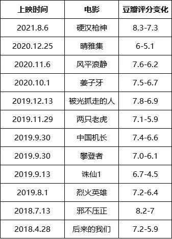 鉴于很多海外电影都会涉及到国内外上映时间差异或是网络盗版资源滞后问题,这一部分影片的评分波动大多属于正常现象,因此本文只针对国产电影。