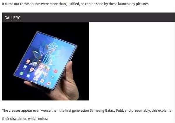 在华为Mate X2发布之后,外媒techradar在其发布的体验文章中称“展开后,屏幕折痕似乎比我们在Samsung Galaxy Fold和Galaxy Z Fold 2上看到的折痕要更宽,不过一旦开始浏览内容,您可能会忽略它。”