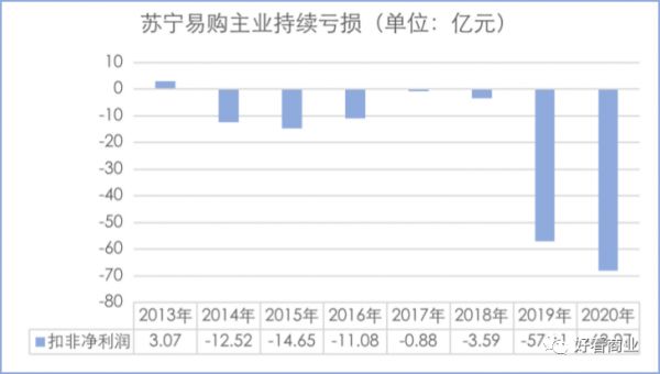 但这些动作在业内基本都是一种“跟随策略”,不仅没有本质上的创新,反而把苏宁拖入亏损泥潭。