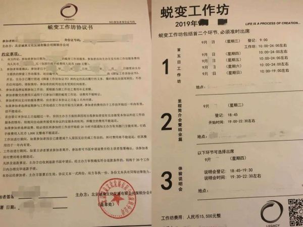 学员参加LEGACY课程签署的协议书及课程安排,受访者供图