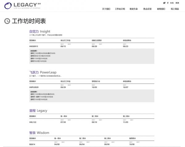 LEGACY网站上关于其课程的介绍