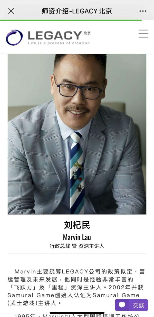据公司网站介绍,目前这家公司的行政总裁是刘杞民,在1995年加入大型国际培训工作坊公司ARC International Lta,开始学习专业培训。后成为里程LEGACY公司"飞跃力"和“里程”的资深主讲人,最后升任公司直接负责人。