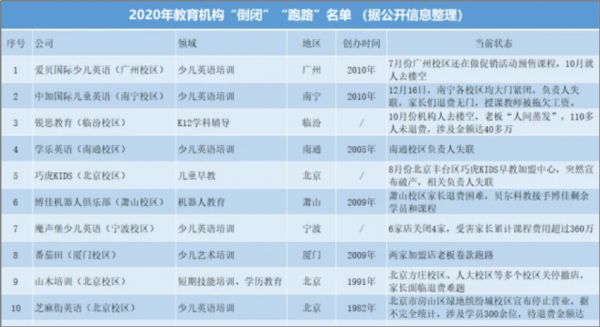 就去年相关机构对K12教育行业进行数据统计,就有10家知名机构已停止运营或直接宣布倒闭。