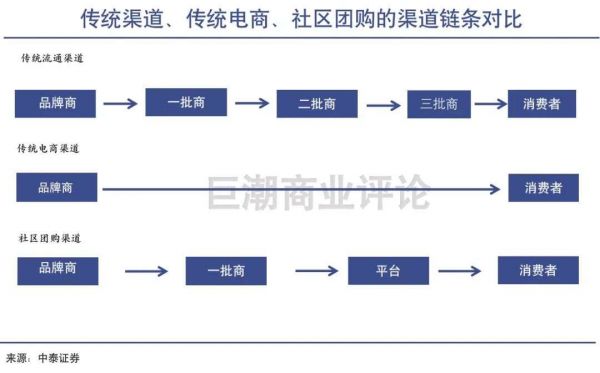 中泰证券指出,传统流通渠道,通过厂家-一批商-二批商-终端零售商层层加价后,相对出厂价的加价率在45%-50%。而社区团购的渠道链条为厂家-经销商(或无)-平台-消费者,通过缩短供应链,提升效率,降低了25%-30%的渠道加价。