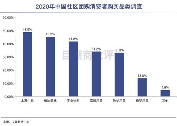 艾媒咨询的调研数据也显示,不仅仅是水果生鲜,超四成受访用户主要在社区团购平台购买粮油调味及零食饮料等品类的商品,日用品也已成为社区团购的主战场。