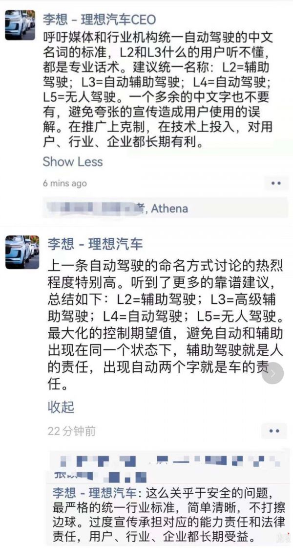 8月16日晚间,理想汽车创始人李想在朋友圈发文称,L2 、L3一类的专业话术,用户容易混淆且听不懂,建议统一名称为L2=辅助驾驶;L3=高级辅助驾驶;L4=自动驾驶;L5=无人驾驶,一个多余的中文字也不要有。