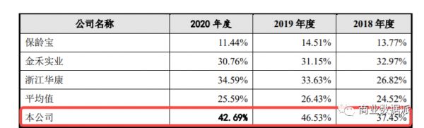 2018年、2019年和2020年,三元生物综合毛利率分别为36.85%、45.77%和42.27%,对比2020年度保龄宝的11.44%,金禾的30.76%,其毛利率几乎可以对标行业内其他任一公司。