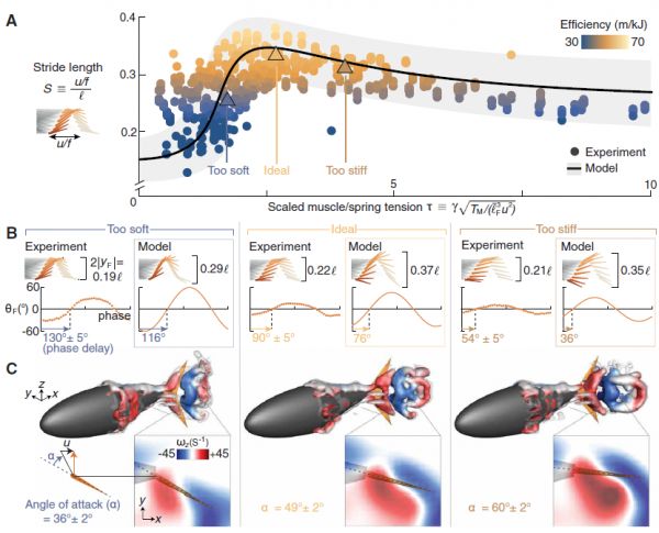 流体力学实验和数学模型预测高度吻合,由此得出尾巴弹性应根据游速平方比例调节以实现最高游动性能。