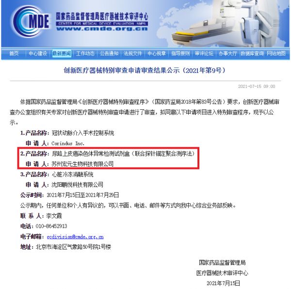 三年来首获绿色通道的癌症早筛体外诊断产品