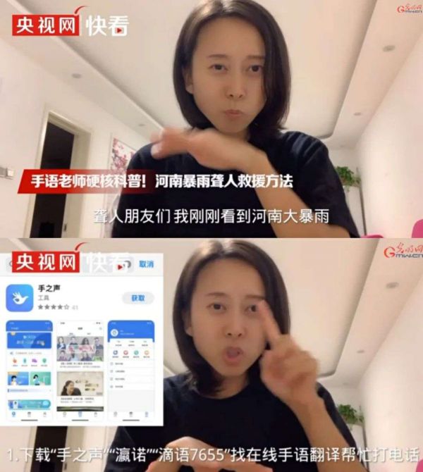 手语导师杜银铃发布聋人自救科普视频。图片来源:央视网 v