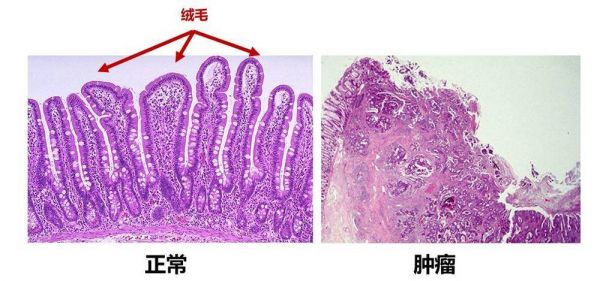 图:正常的绒毛结构和丢失这些结构的肿瘤