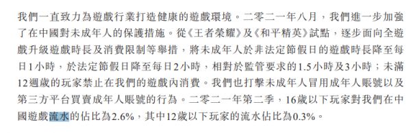 在腾讯第二季度财报中,腾讯表示,16岁以下未成年人对其在中国网络游戏流水的占比为2.6%,其中12岁以下未成年人的占比为0.3%。