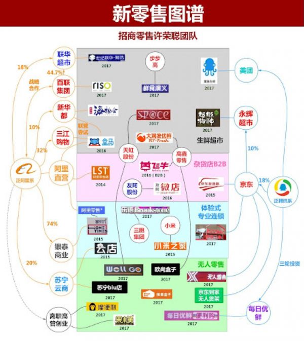 阿里/腾讯新零售图谱(图片来源:招商证券2018年制)