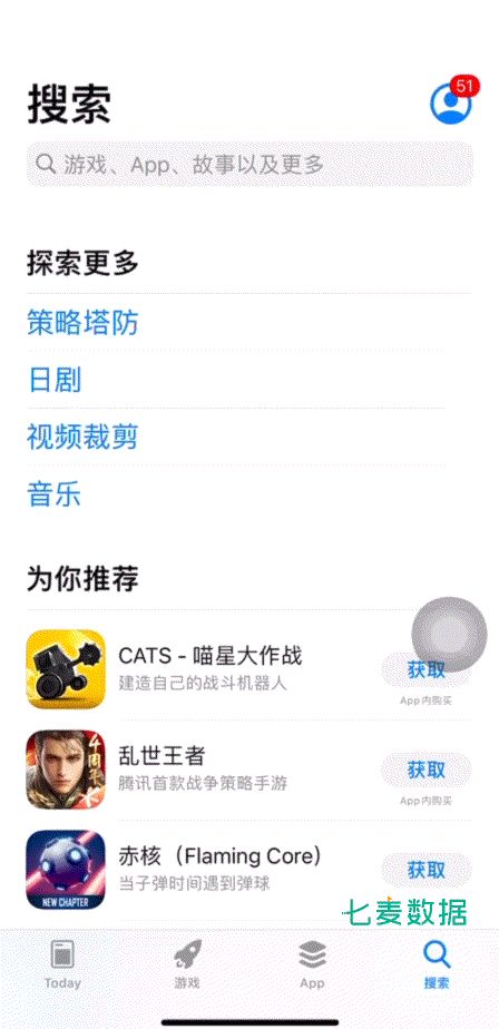 今天(8月17日),七麦研究院测试发现:在App Store搜索“音乐”“游戏”“剪辑”等关键词后,部分手机的搜索结果页顶部出现了“搜索建议”标签,部分用户也向我们反馈了该现象。“搜索建议”功能疑似在中国大陆App Store上线。