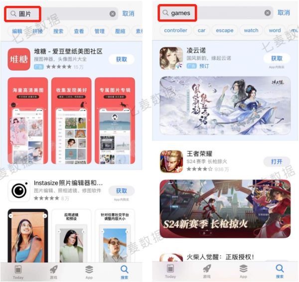经过七麦研究院测试,在展示逻辑、支持语言等方面发现了一些新现象,分享给大家: