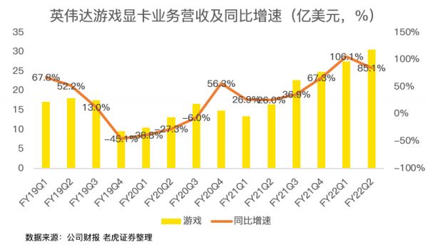 二季度中,游戏业务营收30.6亿美元,同比增长85%。业绩大增的原因,一方面是疫情时代,消费者对游戏需求的提升。另一方面,英伟达游戏显卡性能提升强劲,撩拨游戏用户砸重金求购,GeForceRTX®3080 Ti和GeForceRTX 3070Ti,与上一代相比性能提高50%。游戏显卡目前仍然是英伟达最主要的收入来源,营收贡献比例在47%,接近一半。此项业务一直是英伟达传统的优势项目。