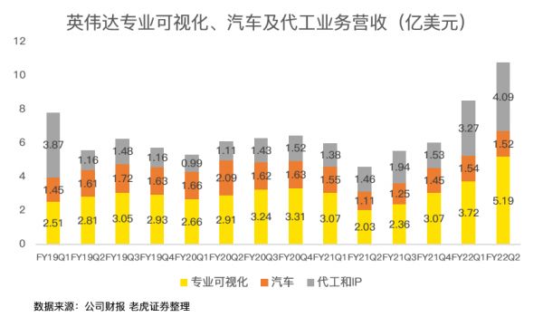 其他业务方面,英伟达专业可视化业务营收5.19亿美元,同比大增155.7%,是二季报最让人惊喜的意外,该增速已创下近年来的新高,有望成长为第三根业务支柱,支撑未来增长。