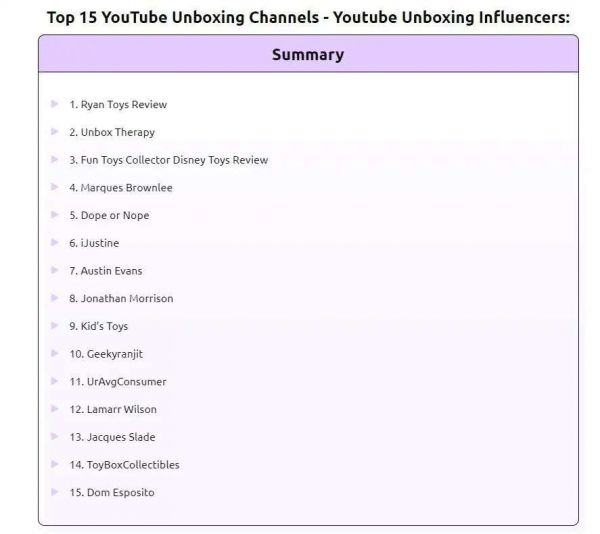 根据 YouTube Insights 的一份报告,早在 2014 年,YouTube 上就有超过2000万条“开箱”搜索结果。最近的数据显示,在YouTube上,开箱视频以电子产品、儿童玩具、化妆品、高端配件和eBay神秘盒子五大类为主,其中最受欢迎的两种开箱视频是以玩具为特色的视频,以及专注于新电子产品的视频。可见儿童玩具拆箱视频的市场较为可观。