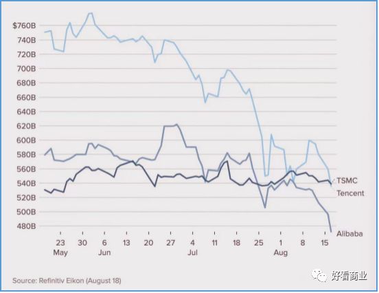 台积电、腾讯、阿里近期市值比较