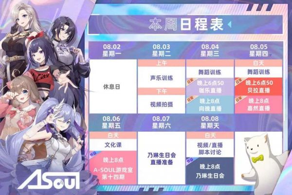 A-SOUL每周营业时间表 来源 / A-SOUL工作室官微