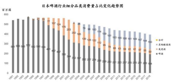 而且相比日本烧酒,清酒,威士忌等,日本的啤酒消费量占整体酒类消费比例一直没有低过65%,可见市场规模之大。