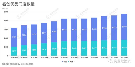 全年来看,相较于2020年全年增加了303家海外门店,2021年全年增量为235家,增速有所放缓。