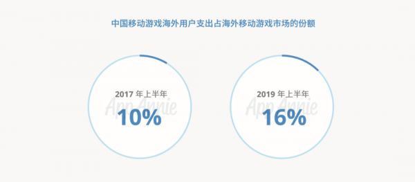 根据数据分析公司App Anine的统计,2017年上半年,中国出海游戏在海外市场份额占比为10%,而到了2019年上半年,这一数字扩大到了16%。鉴于海外市场相对稳定的玩家偏好情况,中国游戏的海外增长速度不可谓不强势。