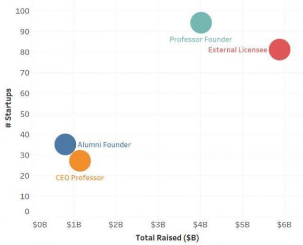 2019年,主要针对大学创业团队的投资机构Osage University Partners (OUP)从4000多个由科学家创立的初创企业中选择了263个进行了分析研究。OUP将这些CEO分成四组,来描述创始人与知识产权的关系,分别是“校友创始人”、“教授CEO”、“教授是创始人但不是CEO”、“外部授权”。