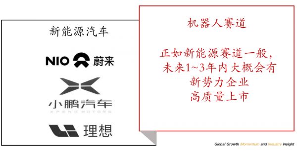 我们判断,与新能源汽车市场类似,机器人市场的第一波真正高潮将来自于新势力的top3企业上市。这大概率会在未来1~3年内发生: