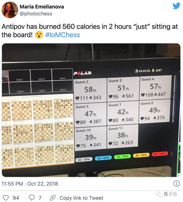 来自俄罗斯的大师级选手Antipov在2个小时比赛里消耗了560千卡。