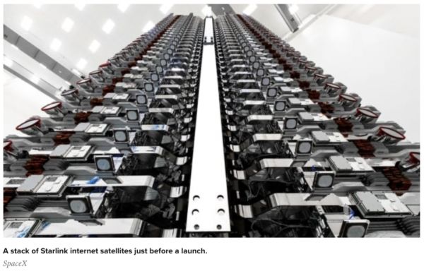 正在准备发射的SpaceX星链卫星集群