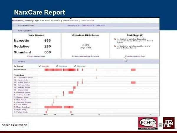 NarxCare可以利用AI算法对病患的处方药数据进行统计和分析,最终得到一个风险报告。