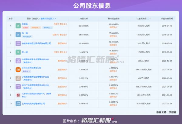 股权结构方面,天眼查显示,目前创始人张宝恒是公司最大股东及实际控制人,控制公司29.5%的股份;另小米持股4.8%,北京合众创投持股0.99%。