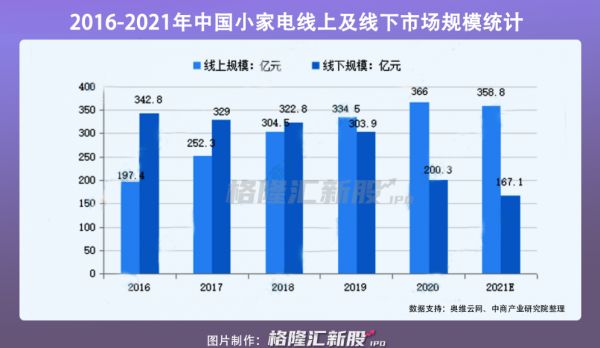 受惠于政策支持、疫情爆发催生的宅经济红利、线上直播刺激等推动厨类小家电需求高涨,其市场规模取得新突破,中商产业研究院数据显示,2020年小家电线上市场规模达366亿元,同比增长9.4%。