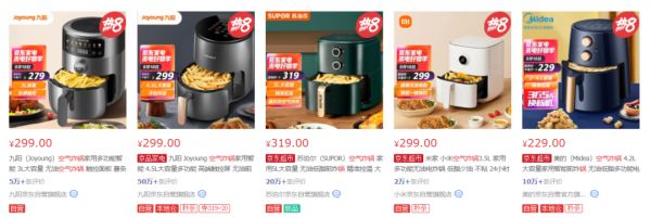 从企业数量上,据奥维云网数据显示,2018年 1 月至2020年 1 月期间,仅天猫旗舰店上,与空气炸锅相关的店铺来看,数量有近千家,入驻的空气炸锅的品牌就超过100家。