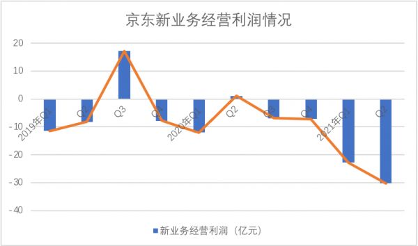 京东零售业务经营性利润在2021年Q2同比增长了23%,但创新业务方面却是吃掉了大部分利润,也就是基石业务尚好,创新业务亏损,以此调整了损益表。