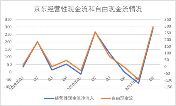 这就很值得玩味了,一方面京东主体业务确实相当稳定,现金沉淀能力又在持续优化中,但另一方面,集团也积极通过以上沉淀的利润和现金,开拓新业务,将损益表体现在一个较低水平,2021年Q2,京东对全员薪水普涨,恐也是经营性利润下调的诱因之一。