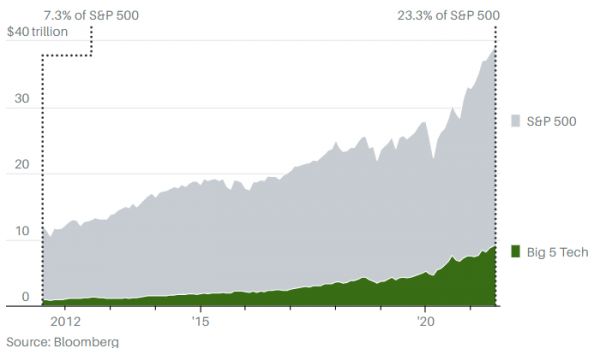 五大科技股仍是押注技术统治世界这一趋势的最佳方式。