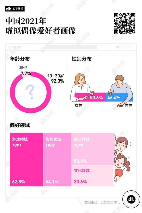 根据艾媒数据中心的研究,喜欢虚拟偶像的人大多数是19到30岁之间的Z世代群体, 对于他们这些虚拟偶像追星族来说,花钱就是他们最直白地表达爱的方法。