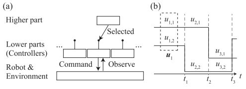 机器人的动作行为通常使用包含顶层和底层部分的分层系统生成。利用顶层部分和底层部分的协同行动,最终实现机器人的期望运动。