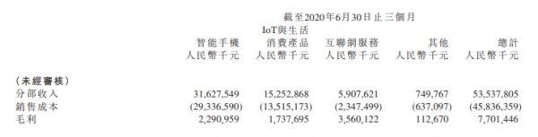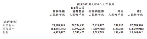 财报提到,小米在2021年第二季度中,毛利由2020年第二季度的77亿元增加96.7%至151亿元。在各项业务中,智能手机业务的毛利率由2020年第二季度的7.2%增加至11.8%,IoT与生活消费产品分部毛利率由2020年第二季度的11.4%增加至13.2%,互联网服务分部毛利率由2020年第二季度的60.3%增加至74.1%,整体的毛利率由2020年第二季度的14.4%增加至17.3%。