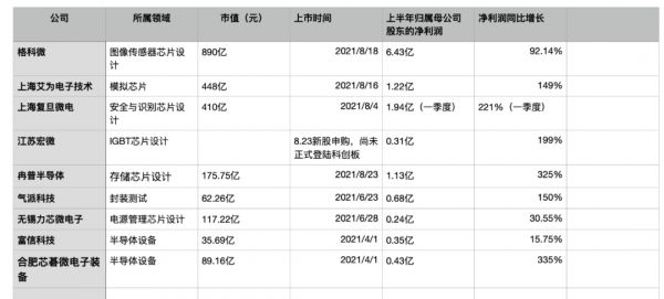 相比上市初的股价涨势,现在的市值更能反应目前半导体上市企业的真实状态。在上半年上市的9家企业中,价格最高的格科微也没有达到千亿市值,最低的富信科技市值仅35.69亿元。“半导体市场现在已经是情绪退潮期,很多老股市值都开始回落。所以新股发行后,市值都还算理性,能反应企业的真实水平。”