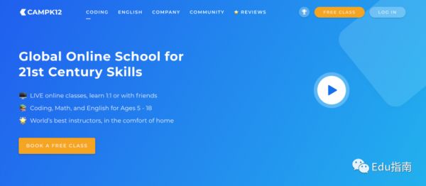 从官网可以看到,Camp K12面向5-18岁的学生,教学的技能包括:编程(移动应用开发、人工智能与机器学习、AR/VR、游戏开发、Python 与数据科学、web开发、我的世界和 Roblox等)、数学和英语。上课形式主要是在线直播课程,私人教师一对一学习,或已游戏化互动的方式小组形式学习。
