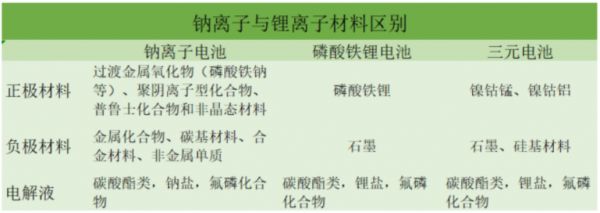钠离子电池的工作原理与锂电池的工作原理相近,并且在电池的构成上,钠离子电池同样拥有正极、负极、隔膜和电解液四大部分,不过,在各大部分的使用材料差距较大,特别是正极材料和负极材料。并且,由于钠离子尚处于发展初期,还没有形成较好的产业链。
